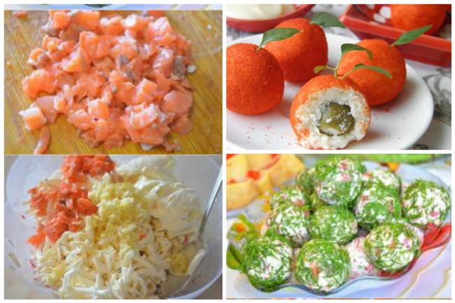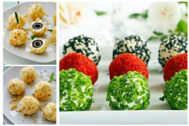 - Очень советую сырные шарики — это простор для фантазии — шарики с рыбой, с мясом, с зеленью. Главная основа — перетертые плавленные сырки с чесноком — внутрь что угодно, обсыпка — что угодно от паприки, до орешков