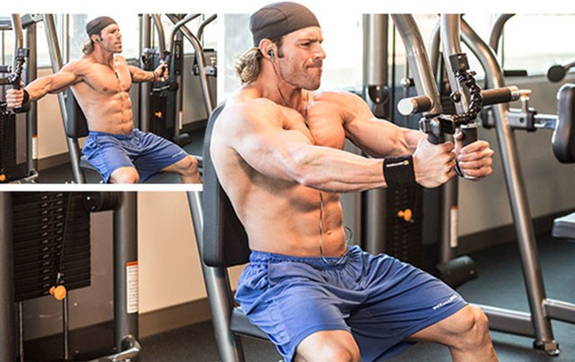 - Отрегулируйте сиденье тренажера так, чтобы рукоятки были на уровне груди.