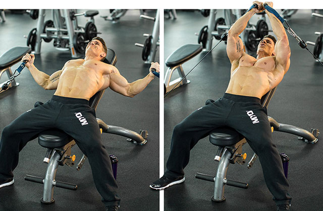 Это эффективное упражнение для изоляции грудных мышц после базовых упражнений. Кабели допускают непрерывное напряжение мышц на протяжении всей амплитуды движения. Используйте его последним в день тренировки груди, для того, чтобы добить мышцы до отказа.