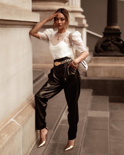 Современная мода для утонченной женщины — кладезь новых и интересных вещей, которые могут разнообразить ее привычные комплекты. Ведь она не зациклена на классических фасонах и всегда ищет свежие решения для своих нарядов. Она запросто может впустить в свои образы джинсы слоучи, брюки джоггеры, «широкоплечий» пиджак, блузку с пышными рукавами или кроссовки в стиле колор-блок, но только с тем условием, что эти вещи не испортят ее уникальный стиль.