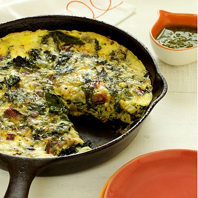 2. Фриттата с рикоттой, свежей зеленью и соусом песто