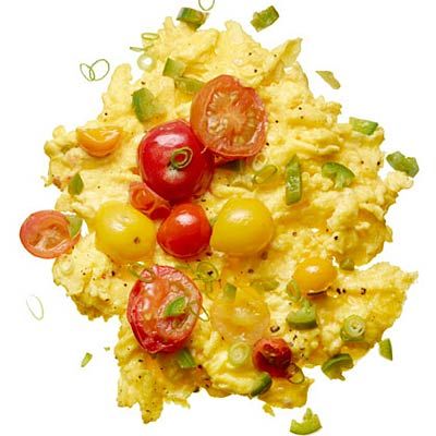 - 3. Скрэмбл с помидорами черри и халапеньо: