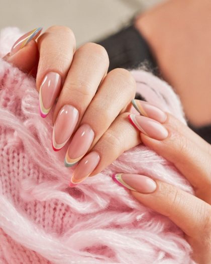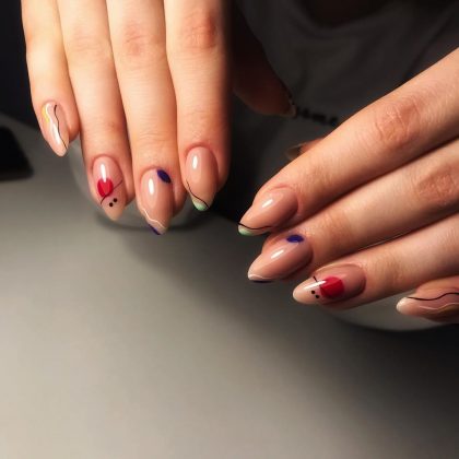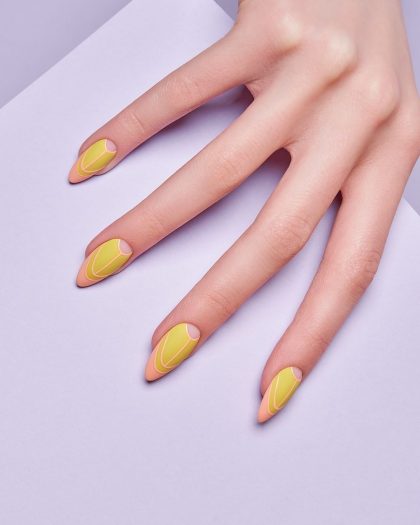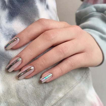 Самый простой способ визуально вытянуть пальчики — сделать нюдовый маникюр с миндалевидной или овальной формой ногтей. Лучше всего подобрать оттенок покрытия в тон кожи или чуть светлее, но не стоит увлекаться белесыми и холодными оттенками. Финиш не имеет значения: он может быть матовым или глянцевым. Оригинально смотрятся покрытия с полупрозрачной текстурой.