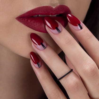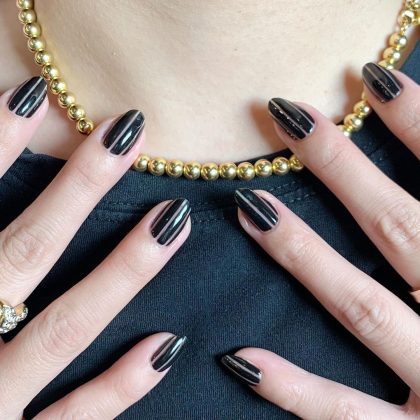 Да, даже темные цвета маникюра могут визуально удлинять пальцы. Но есть один нюанс. Пластину не нужно закрашивать полностью: пара мм по бокам должны оставаться «голыми», чтобы ногти и пальцы казались вытянутыми. Отлично смотрятся глубокие оттенки изумрудного, бордового, фиолетового, а также классический черный цвет. Однако такой маникюр требует частой коррекции. Если с нюдовым дизайном можно походить на неделю больше, и отросшая часть ногтя не будет бросаться в глаза, то с темными покрытием этот трюк не пройдет.