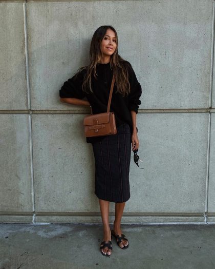 Лучше иметь в гардеробе 2 юбки, разные по стилю и фасону. Одна должна быть базовой и подходить на каждый день, например трикотажная юбка-миди. В такой можно и в офис пойти, и на прогулку с подругами. А вторая — более нарядная: асимметричная, с принтом или просто яркого оттенка.