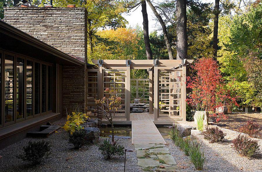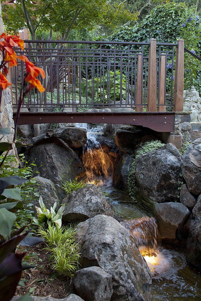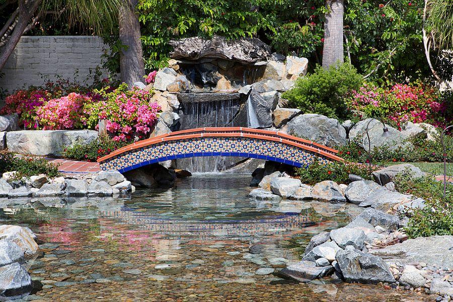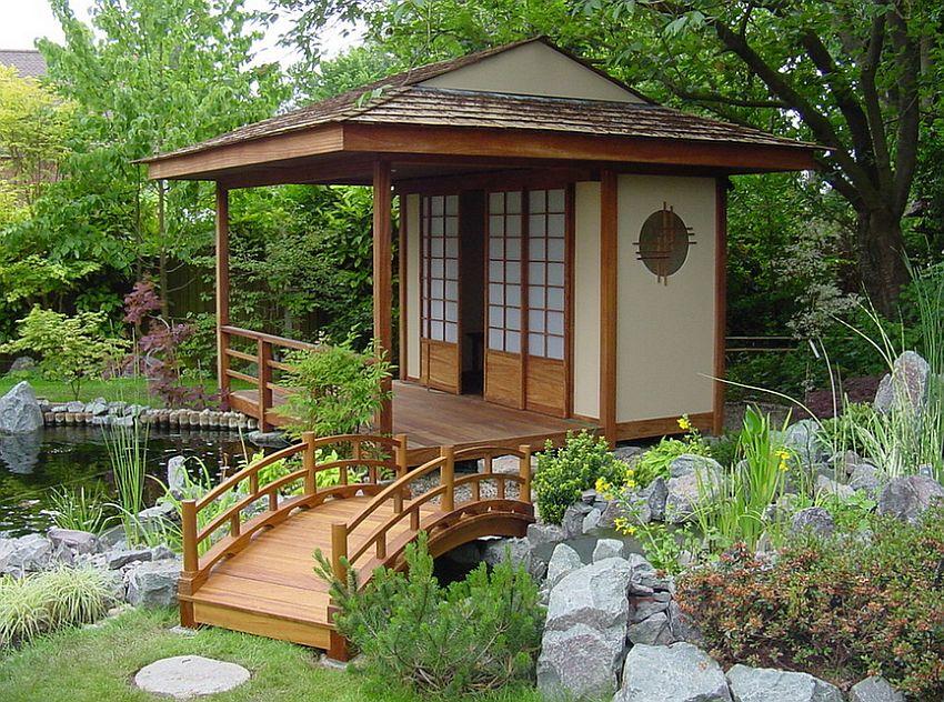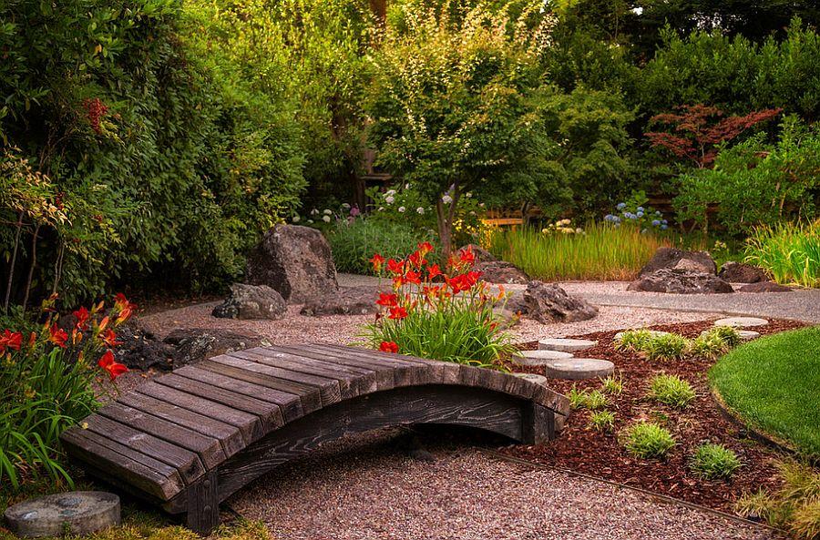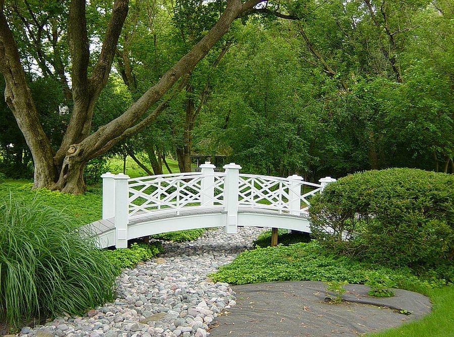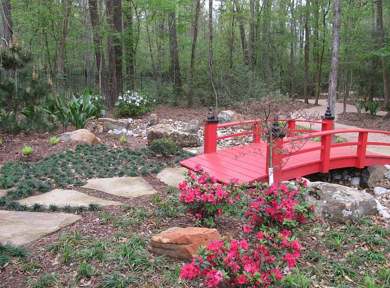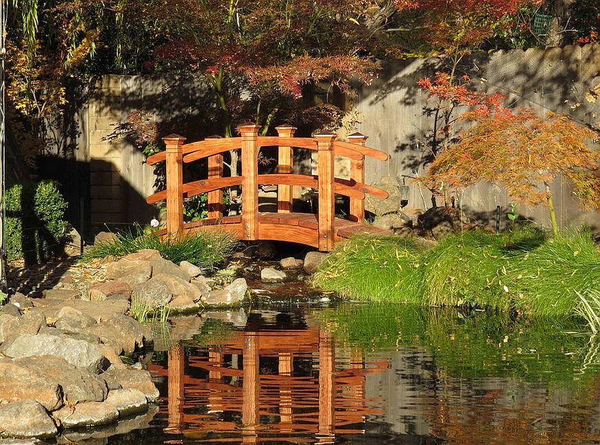 Японские мостики невероятно популярны по всему миру и их отличительная черта — арочный дизайн. Даже современные и деревенские садовые пейзажи могут быть дополнены подобными конструкциями.