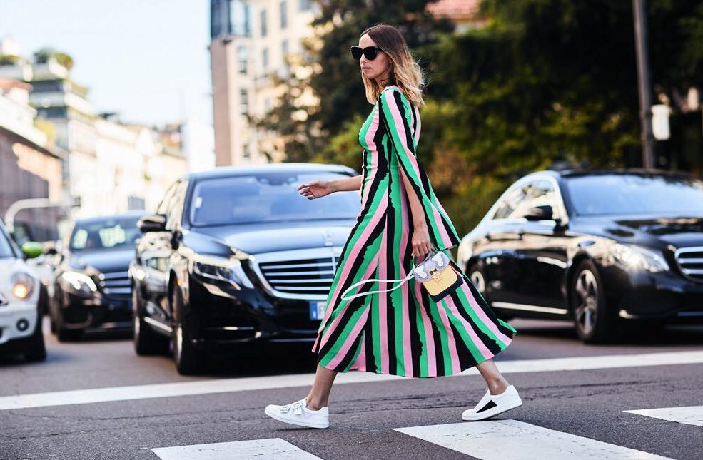 Пришло время распрощаться с горизонтальными полосами (а это, к сожалению, платья в морской тематике). Вертикальные полосы будут смотреться на вас гораздо эффектнее, поскольку взгляд будет скользить вверх-вниз, создавая иллюзию удлинённого силуэта. Добавьте к такому принту крой с высокой посадкой и игривой длиной «миди» и вы внешне ничем не будете отличаться от модели.