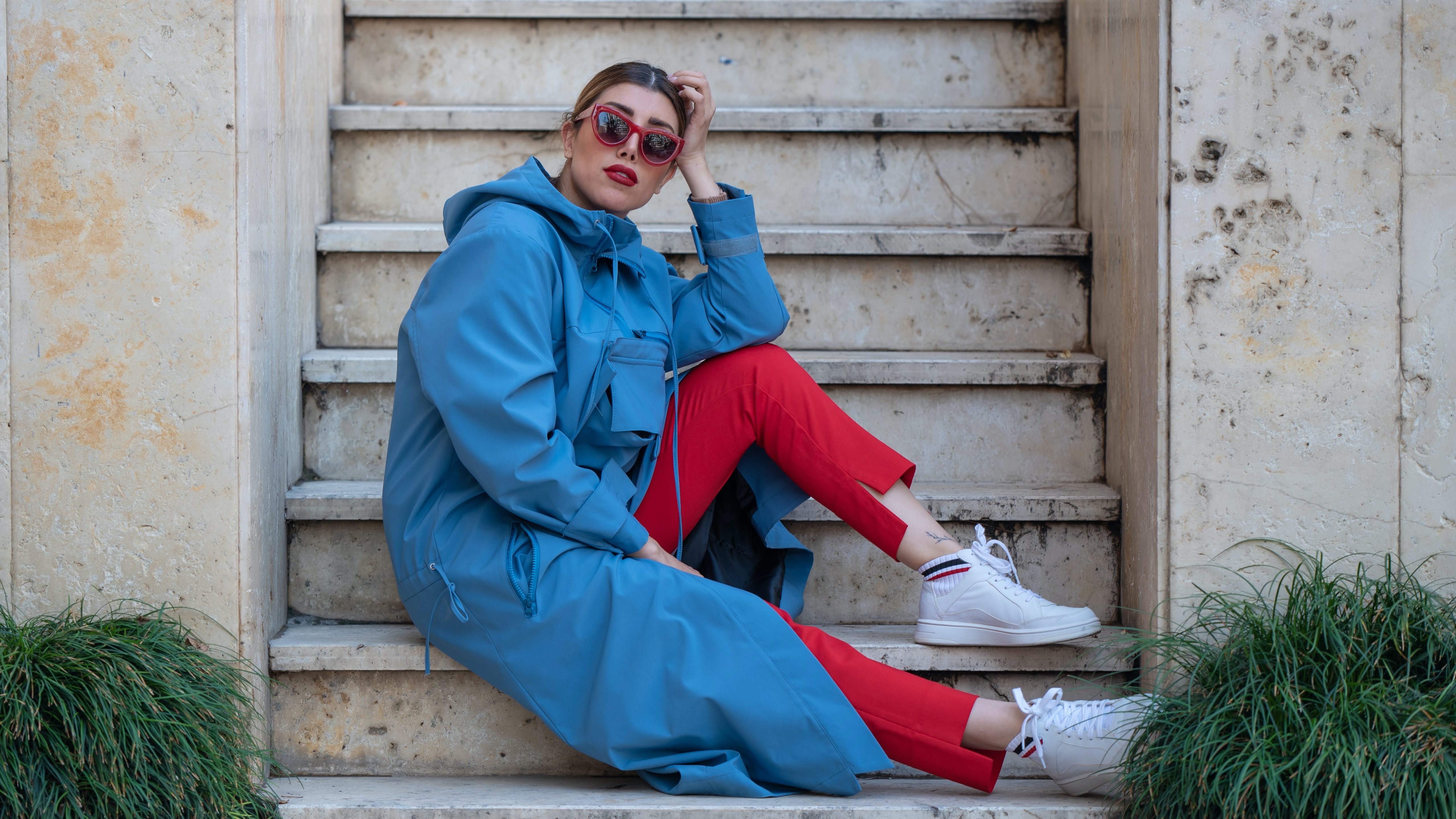 Такой костюм можно сочетать с массивными кроссовками и рюкзаком, а если вы хотите блеснуть знаниями современных трендов, примерьте его с классическими лодочками и элегантной сумкой.