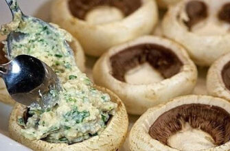 Шампиньоны, фаршированные курицей и сыром