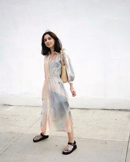 Полуприлегающее платье с кулиской и юбкой А-силуэта — идеальный вариант, чтобы обозначить талию у фигуры «прямоугольник». За счет расширения подола и в меру объемного верха создается впечатление, что перед нами 100% «песочные часы». Кстати, «яблокам» такое платье тоже подходит, но только в том случае, если оно не слишком прилегает в районе талии.