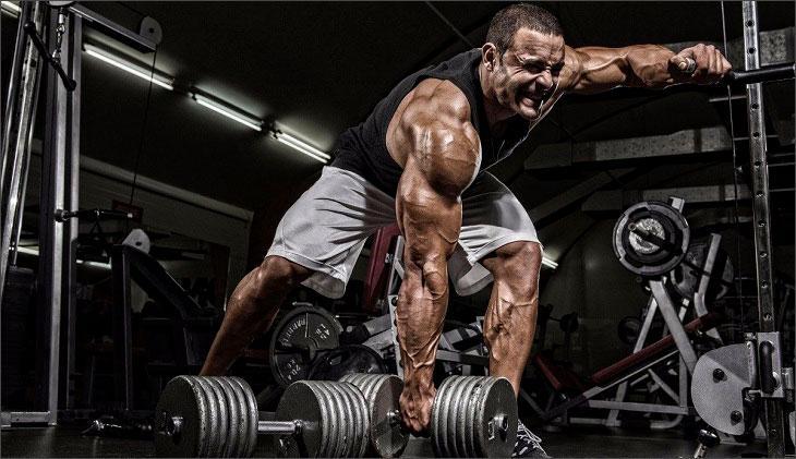 - Тяга гантели в наклоне одной рукой – 3*10.
