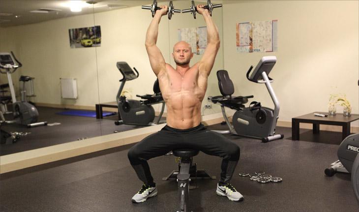 - Жим гантелей стоя или сидя – 4*10.