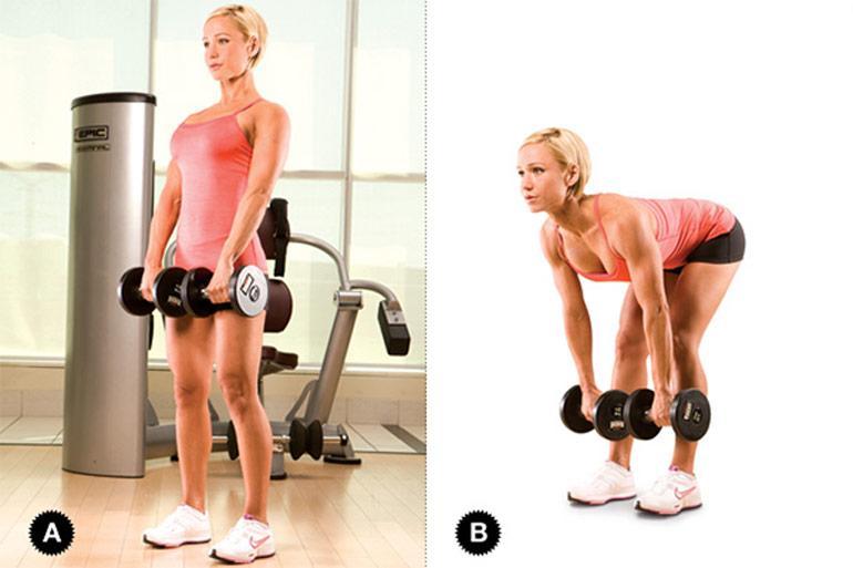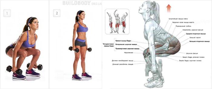 - Мертвая тяга с гантелями – 4*10.
