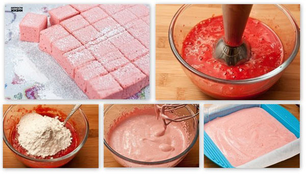 - В клубничную смесь добавляем желатин и даем ему немного набухнуть.