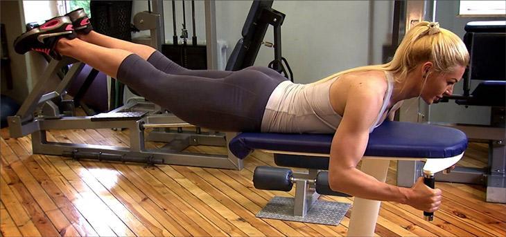 - Выполняйте те же движения ногами, что и при обратной гиперэкстензии.