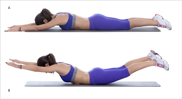 - Одновременно оторвите руки и ноги от земли, прогнувшись в талии. Вы должны быть похожи на застывшего в полете супермена.