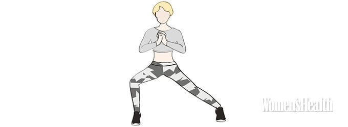 Из положения «ноги вместе» опустись в боковой выпад – до параллели бедра с полом. Встав обратно, получишь 1 повтор. Можешь сделать 25 раз на одну ногу, потом столько же на другую. Или чередуй конечности.