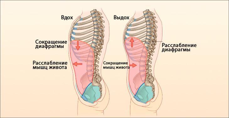- Тонизирует мышцы. Во время вдохов, выдохов функционировать должны все части тела, чтобы поддерживать здоровье иммунитета, тонус мышц. Диафрагмальное дыхание включает работу мышц брюшного пресса, спины, тазового дна, диафрагму.