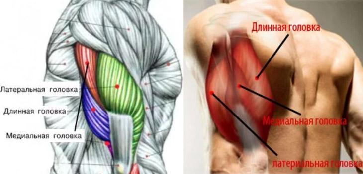 Разгибают руку все три головки. А длинная отвечает за остальные движения.