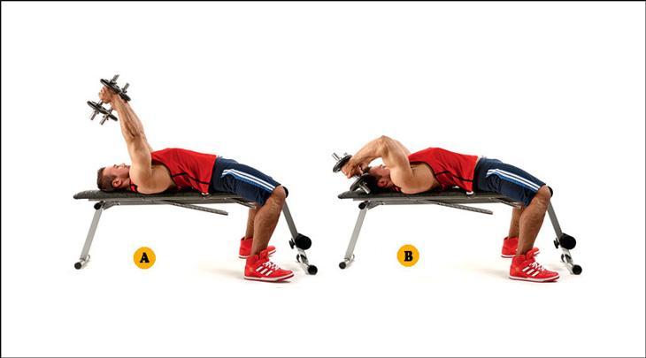 Суть таких упражнений в том, чтобы сосредоточить все внимание на разгибании локтевого сустава, то есть работе трицепса.