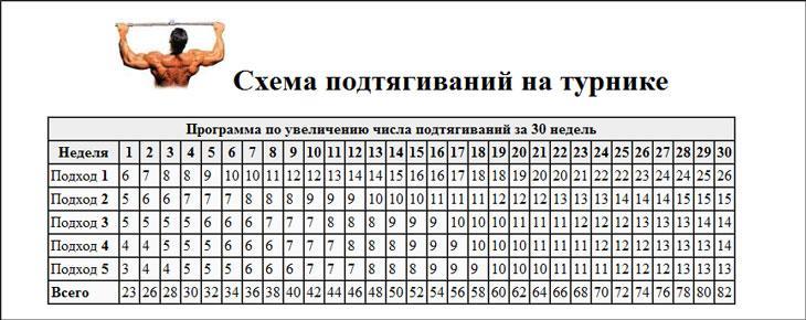 Данную методику можно использовать при подготовке к программе «Подтягивания за 30 недель». Тренироваться предстоит 3 раза в неделю, придерживаясь того же количества повторений и подходов, что и в упомянутой программе.