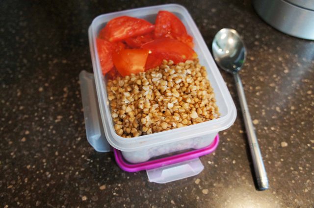 — термически обработанное мясо (никаких суррогатов типа сосисок и колбас!) и кашу (либо овощи, если Вы ограничены в употреблении углеводов). При этом не стоит использовать какие-либо заправки, кроме растительного масла, во-первых, они значимо повышают калорийность (я про соусы и майонезы), во-вторых, в тепле способствуют более быстрой порче продуктов.