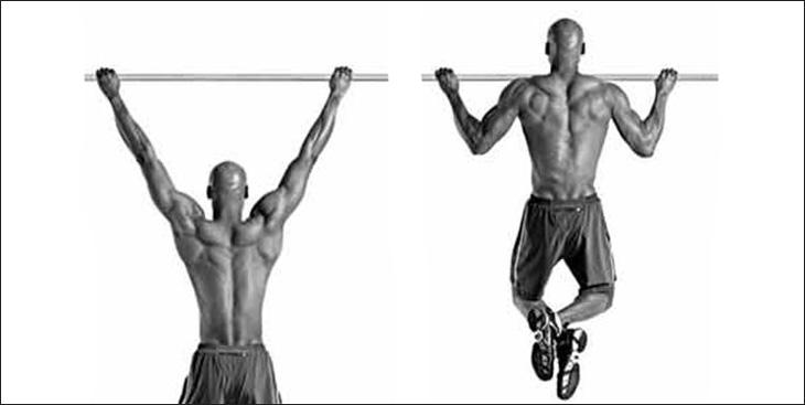 - Подтягивания широким хватом – 8-10 повторений по 3-4 сета