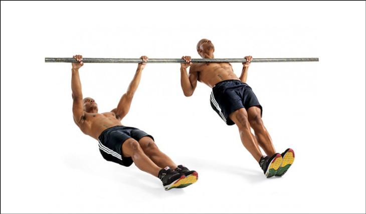 Хват в упражнении можно менять с прямого на обратный. При обратном хвате есть смысл сместить перекладину чуть вниз — ближе к животу. Так низ спины окажется под прицелом, вдобавок и бицепсы прокачаете!
