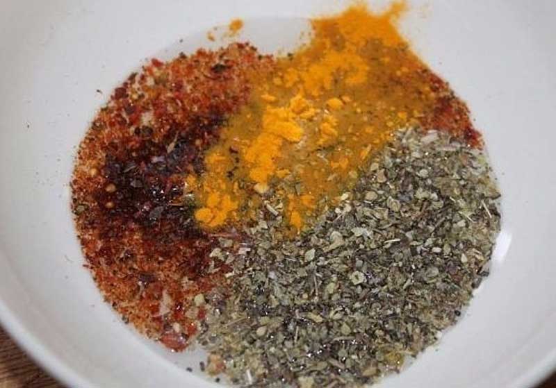 специи: куркума, прованские травы, сладкая красная паприка – по 0,5 чайной ложки