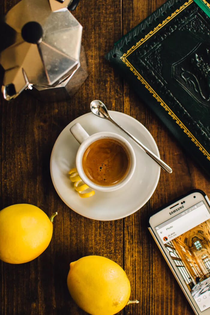 Итальянцам нравится пить бодрящий напиток в виде эспрессо с лимонным ломтиком. Причем желательно надавить на него ложкой перед употреблением кофе, чтобы сок лимона был ярко выражен.