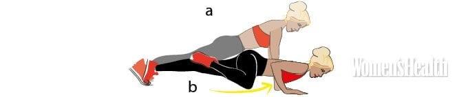 - Встань в планку на прямых руках (a).