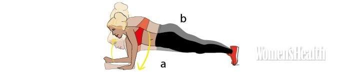 - Сначала встань в планку на предплечьях (a). Упритесь левой ладонью в пол и выпрями руку, потом сделай то же правой – и окажешься в планке на прямых руках (b).