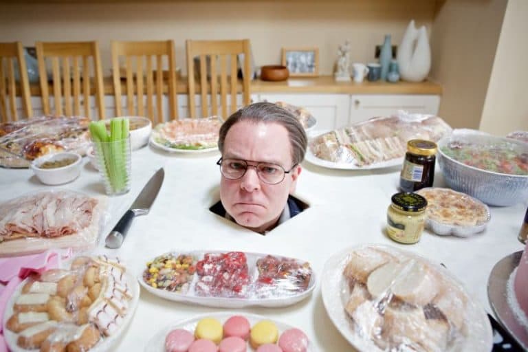 Воспользовавшись тем, что дорогая мама учапала на рынок, зятек выпилил дырку в обеденном столе, потом залез под него, просунул голову в отверстие и замер в таком положении. Скатерть свисала до полу, и тела шутника не было видно. Еще он предварительно обильно полил кетчупом все вокруг своей дурьей башки.