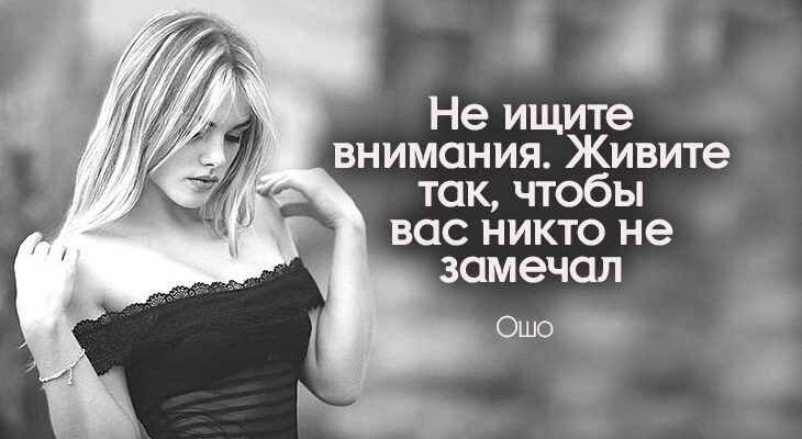 Почему вы ищите внимания? Потому что вы не уверены в себе, не знаете, кто вы. Но как вы узнаете кто вы с помощью внимания? Вы не можете узнать кто вы, глядя в зеркало, и вы не можете узнать, кто вы, глядя в глаза других — ценят они вас или критикуют, — эти глаза не более, чем зеркала: дружественные, враждебные, но все это лишь зеркала.