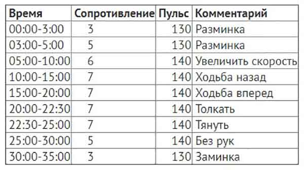 Тренировка, занимающая 20 минут, оптимально подойдет для новичков, которые только начали осваивать эллиптический тренажер. Движения должны быть направлены вперед с прямым, ровным корпусом. Чем выше пульс, тем быстрее нужно двигаться.