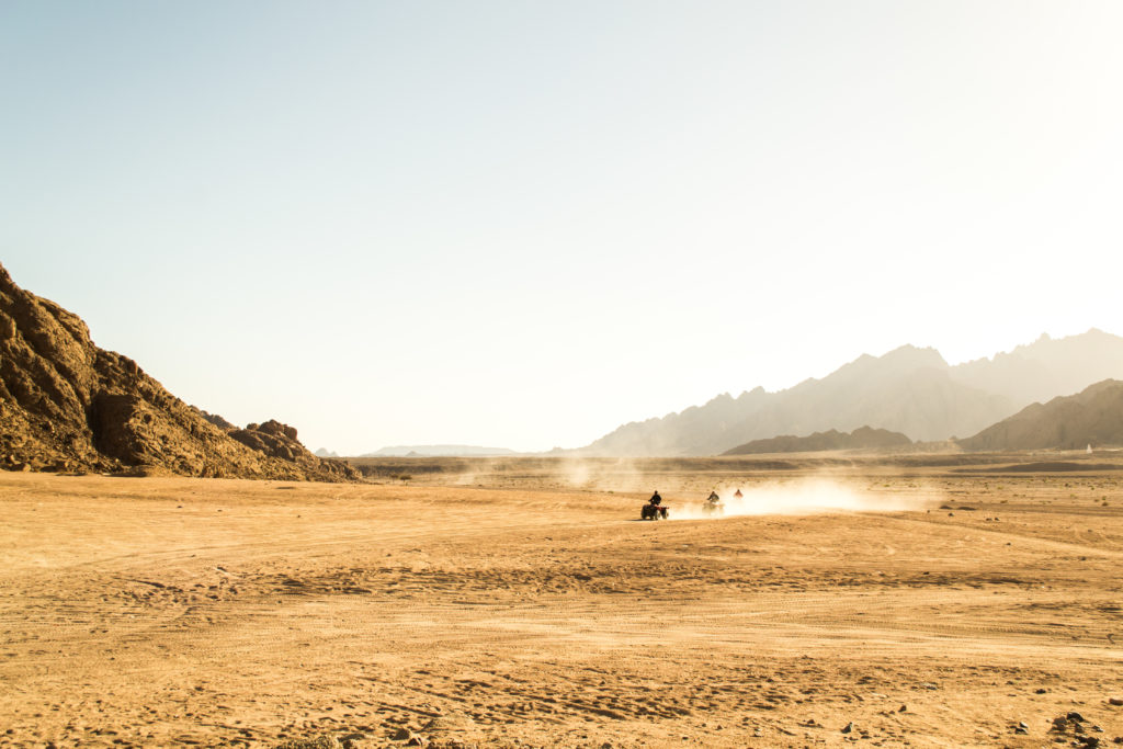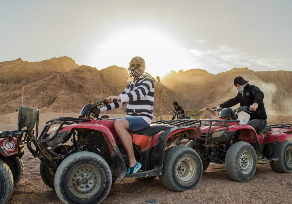 Данная экскурсия очень популярная в Шарме. Первый раз мы были в групповой экскурсии от гида, и заплатили где-то около 20$ за человека. Групповая экскурсия хороша если Вы не умеете ездить на квадроцикле и на чём-либо другом. Но езда в стиле «газ-тормоз» приедается через 20 минут.