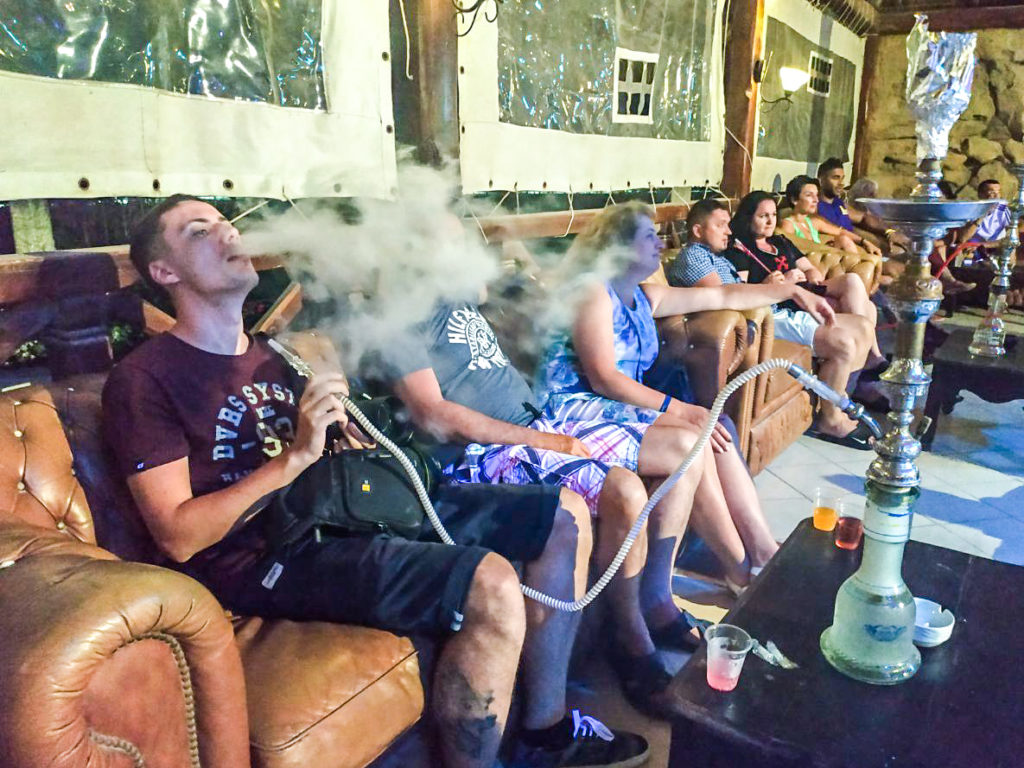Покурить кальян можно почти везде. В отеле, почти в любом заведении. Стоит от 1$ до 5$. Но подумайте, стоит ли оно того. Кальян там не такой как у нас. Во-первых, делается он на апельсиновых углях, которые быстро прогорают и своим вкусом перебивают всё, что возможно. Соответственно кальян начинает горчить уже сразу. Во-вторых, самый «крутой» табак который у них имеется — «Al Fakher». Ничего против не имею, но выбор так себе.