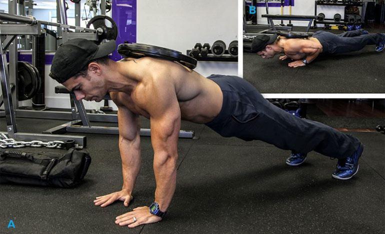Если вы уже работаете с железом, то упражнение можно выполнять в качестве разминки, а выполнение отжиманий с отягощением может стать полноценной заменой жимам штанги и гантелей.
