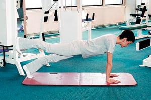 Исходная позиция. Встаньте на четвереньки. Затем выпрямите ноги, опираясь на носки, ладони точно под плечами, пальцы рук смотрят вперед. Тело прямое, как доска. Взгляд направлен вниз, шея вытянута. Пресс и ягодицы напряжены.