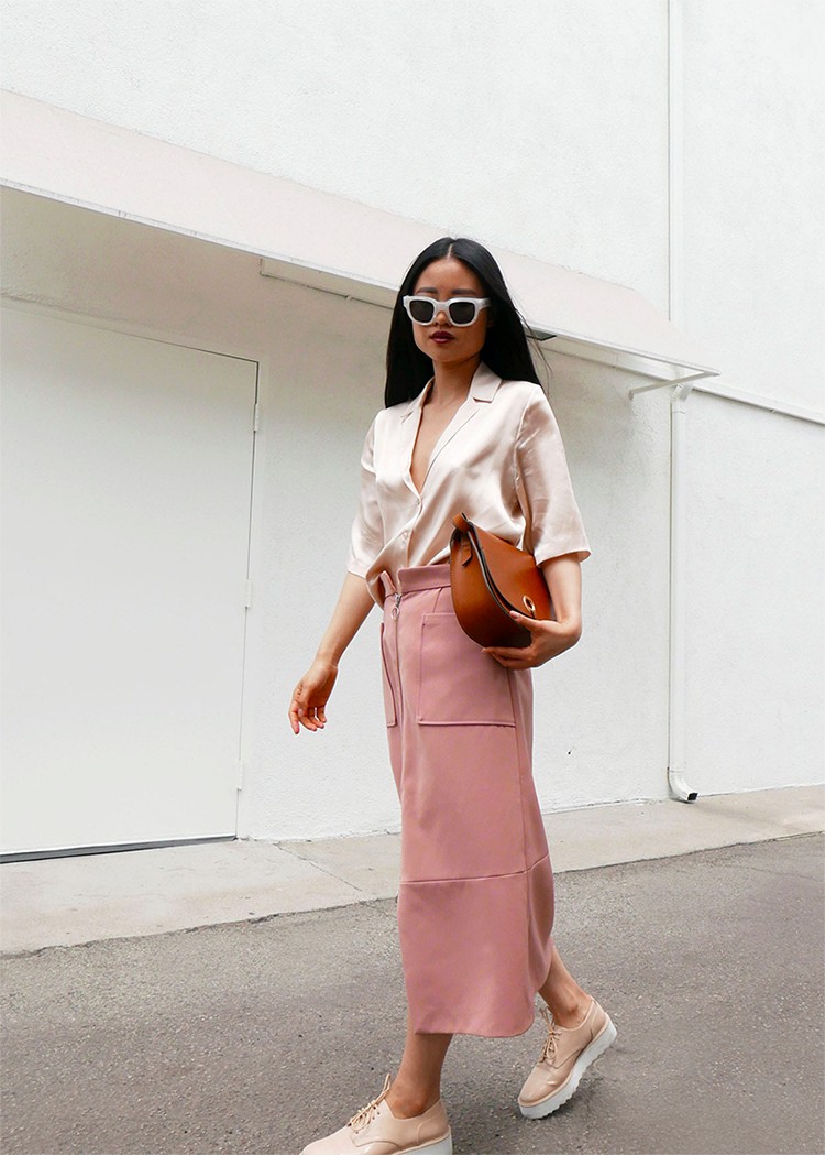 - сочетайте классический розовый с casual вещами — джинсами бойфренда, байкерскими крутками или стенсмит’ами, как это делают stylelovely и victoria tornegren