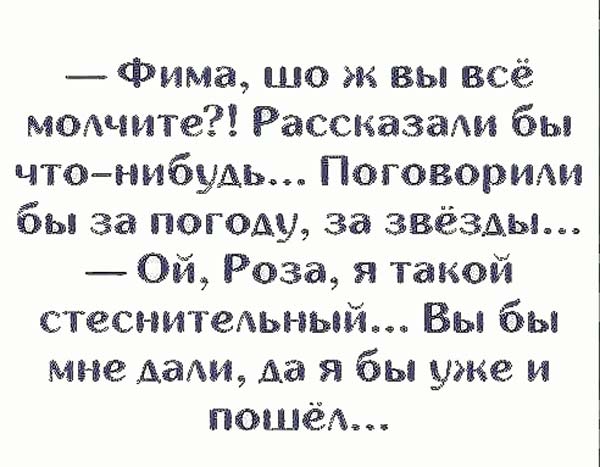 — Тю! Мужчина, вы там не дёргайте транспортом! А то я щас вся упаду, и вам такого счастья таки не унести!