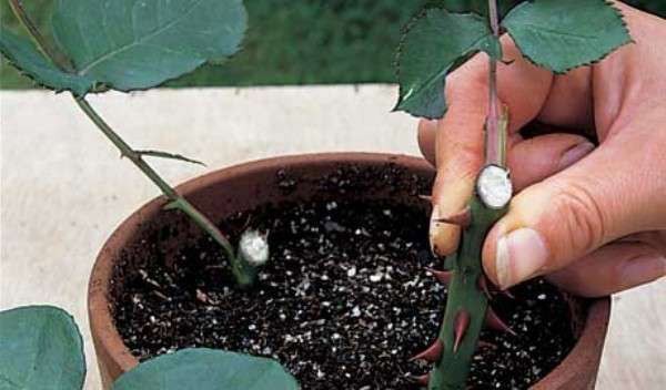 1. Для начала необходимо сделать черенок. Для этого возьмите розу и вырежьте среднюю часть стебля – верхняя или нижняя не годится. На черенке нужно оставить минимум три почки.