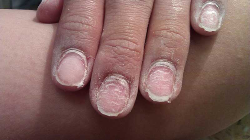 2. На ногтях как минимум 3 слоя, а в основном даже больше 4—5 слоев, так как кроме лака используется еще база и топ, в следствии этого ногтевая пластина не получается достаточное количество воздуха, и пересушивается, от этого ногти также ломаются и слоятся.