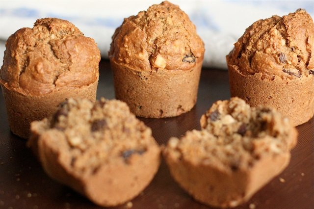 - Добавить изюм и орехи. Разложить тесто по формочкам и выпекать 30-40 минут при 180-200 градусах.