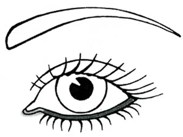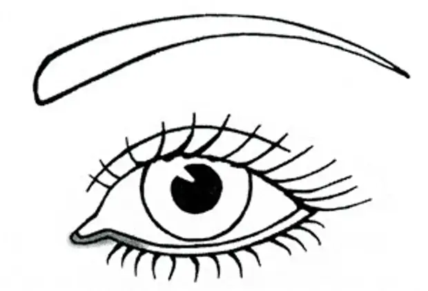 Не слишком острым карандашом подведите нижнее веко. Линия подводки должна максимально совпадать с линией ресниц. Следите, чтобы она не прерывалась (рис.). Если у вас маленькие глаза, нижние веки лучше не подводить, иначе вы еще больше «закроете» свои глаза.