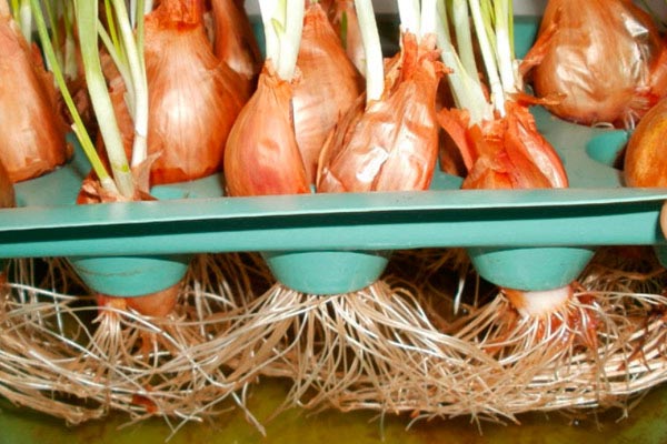 Чтобы обеззаразить ячейки, протрите их перекисью водорода. Оставьте луковицы в теплой воде (примерная температура сорок-сорок два градуса) на целые сутки. Это обеспечит быстрый рост луковых перьев. После этой процедуры просушите луковицы. Как только посадочный материал станет сухим, можете рассаживать луковицы в ячейки.