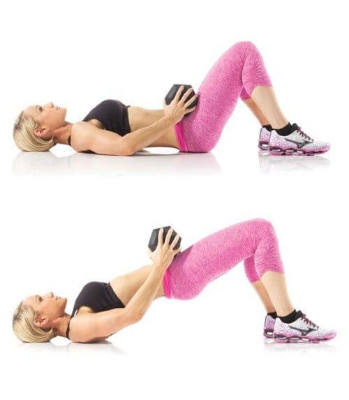 Чтобы усложнить его, в спортзале можно найти скамейку, а дома – диван или другую опору, и поставить стопы туда. Для опытных спортсменов —попробовать зафиксировать стопы на фитболе. Как вариант, возьмите блин от штанги, или сам гриф, и положите его на живот. Вы будете чувствовать ягодицы уже в процессе выполнения движения, а эффект будет довольно быстрым.