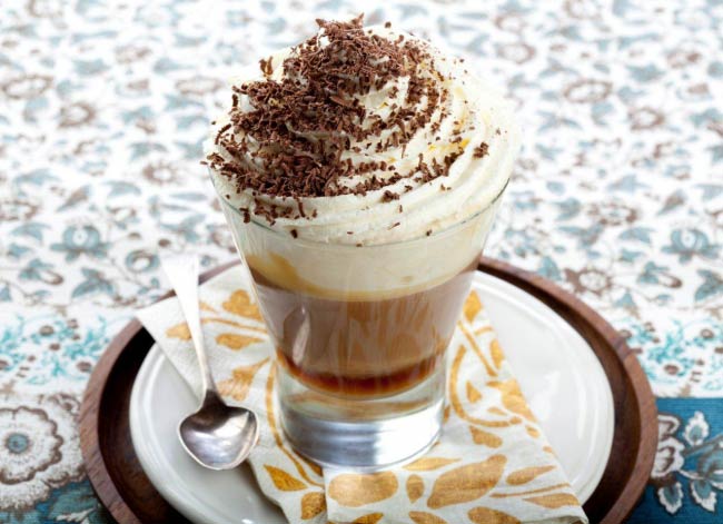 А теперь самое интересное – дополнительные ингредиенты, которые не искажая вкус классической рецептуры, превратят ваш кофейный напиток в нечто близкое к совершенству, в настоящий праздник вкуса. Возьмите по крошечной щепотке свежей лимонной цедры, мускатного ореха (измельченного в порошок) и корицы. Посыпьте цедрой и специями вершину горки из взбитых сливок и скорее подавайте кофе гостям. Их восторг вам обеспечен.