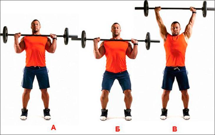 - Швунг со штангой жимовой – 3-4 подхода по 6-8 повторений.