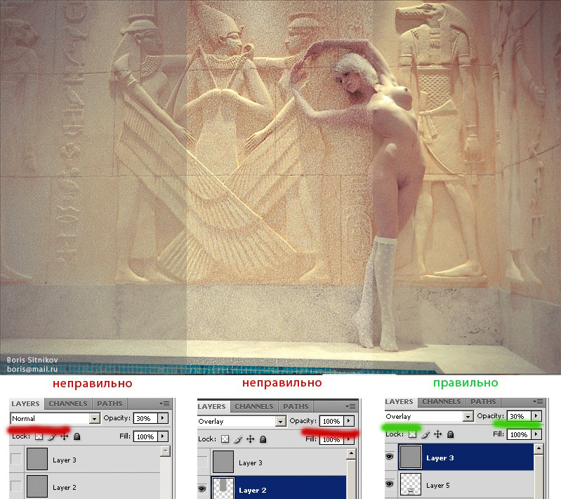 Много лет назад Борис Ситников взял и отсканировал пленочное зерно, чтобы мы, любители цифровой фотографии, не извращались с его созданием в Lightroom или Photoshop. Взял скан, кинул отдельным слоем на фото в Photoshop, выбрал режим Overlay или Soft Light, убавил значение до приемлемого (15-30%) и вуаля, натуральное пленочное зерно.